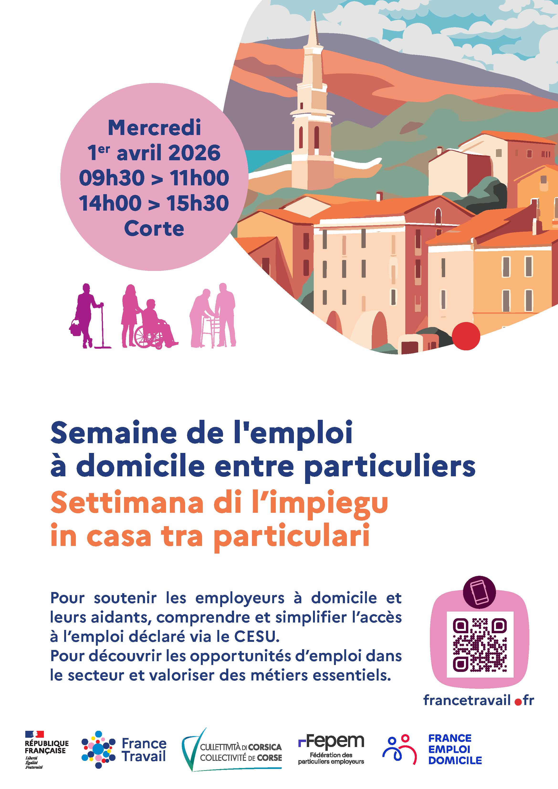 📣 Atelier gratuit à Corte : Embaucher en CESU, mode d’emploi ! Vous employez un salarié à domicile ou vous envisagez de le faire ? 👉 Cet atelier est fait pour vous ! Organisé par la Fédération des particuliers Employeurs de France et la Collectivité de Corse, cet événement vous permettra de : 📅 Mercredi 1er avril 2026 🎟️ Gratuit & ouvert à tous 📌 Inscription obligatoire :