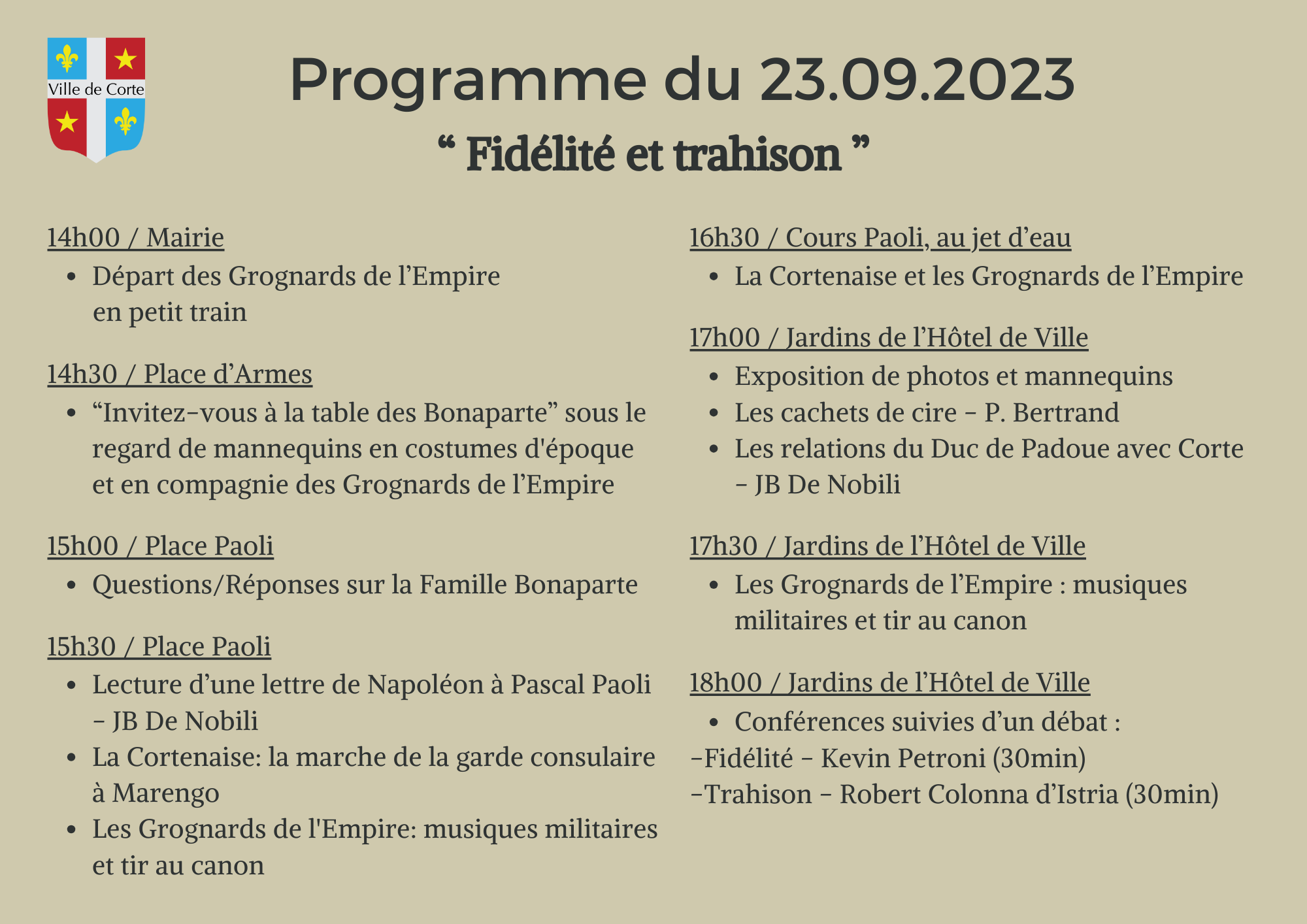 Journée Napoléonienne à Corte : Le Programme du 23 septembre 2023
