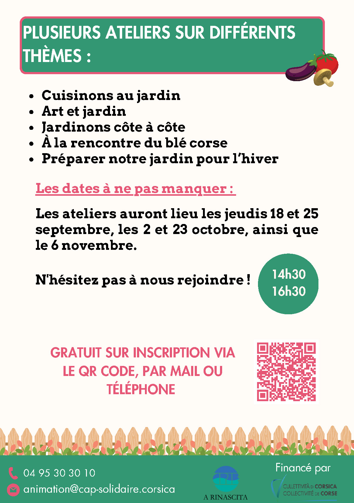 Infos et Inscriptions ➡️ 04 95 30 30 10 ou animation@cap-solidaire.corsica